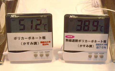 熱線遮断ポリカーボネートは38.9℃。