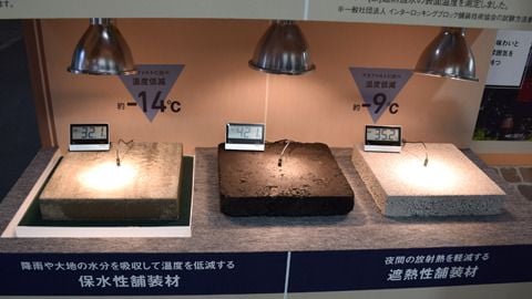 この舗装材は、雨を長時間保水することにより温度を低減させてくれる優れもの!!
