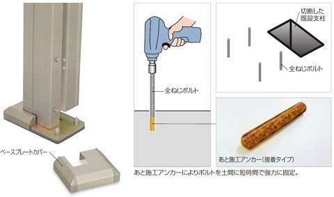 この商品は既存の柱部分をカットして、その上に施工するスタイル。