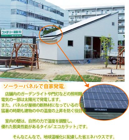 大胆に斜めになった屋根の上一面は、MITSUBISHIのソーラーパネルです。