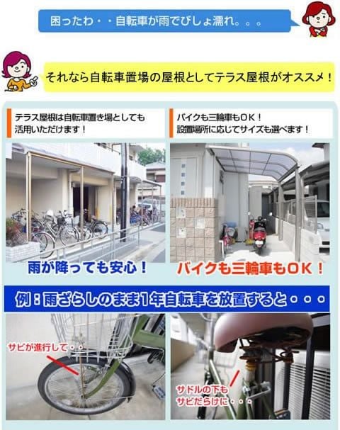 テラス屋根を自転車置き場の屋根として活用している施工例は