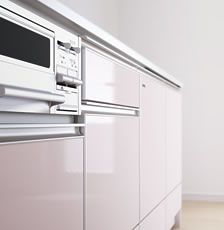 引出の突出がなくフラットな扉面。直線で構成されたデザインはとってもシャープな印象