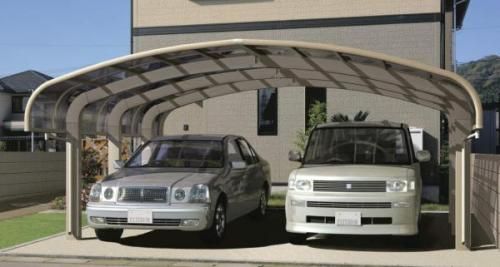 本日はカーブのある屋根が風・雨・雪に効果的にガードするカーポート