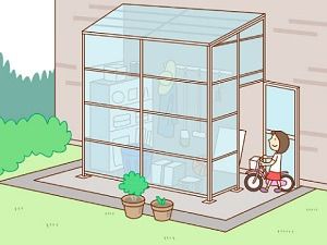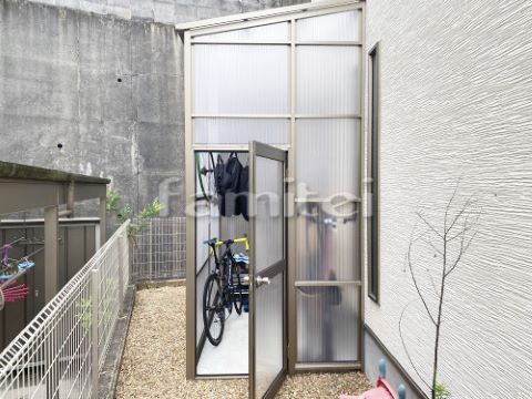 外で雨ざらしにもしたくないモノの置き場所には、家の外壁に取り付けられる収納囲いが便利です