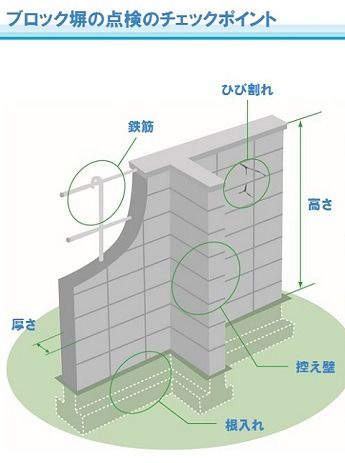 □ 3.控え壁はあるか。(塀の高さが1.2m超の場合)