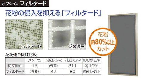 メッシュ目が細かく(200メッシュ/インチ)、花粉の通過をカットするため、