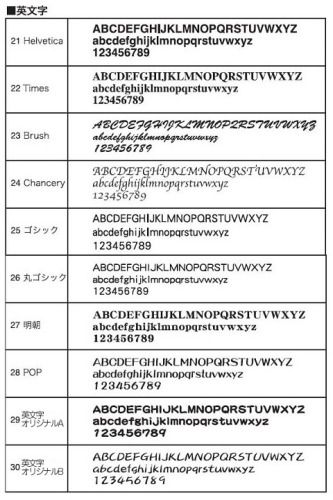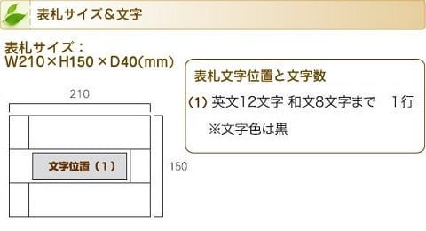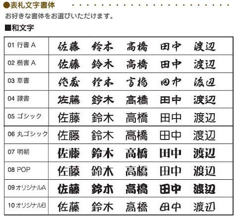 表札サイズと書体は、下記の通りとなっております