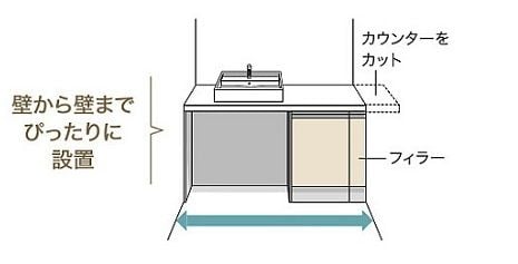 カウンターの長さとフィラーで幅の調整が可能♪