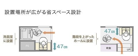 奥行きが47cmとコンパクトな設計の洗面台