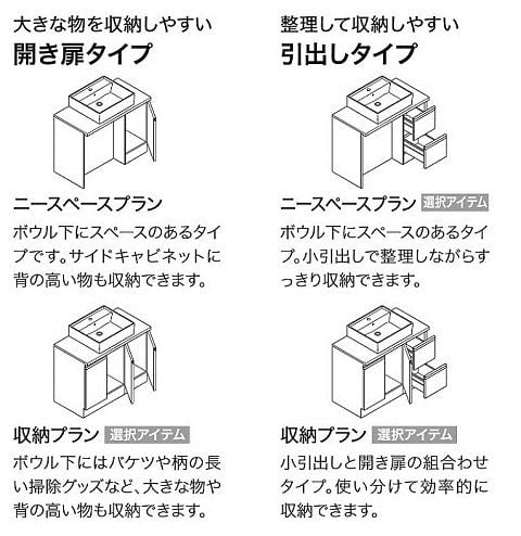 また収納したいモノによって、キャビネット仕様を選ぶことができるのも魅力ですね