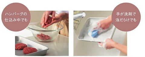 ハンバーグの仕込みで手がベタベタ・・水栓を触ったら汚れちゃう!って時や