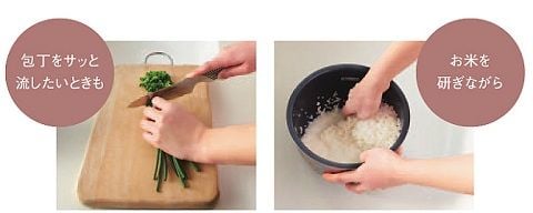 手にもった包丁をサッと洗いたい時や、お米を研ぎ洗いする時にもイイですね