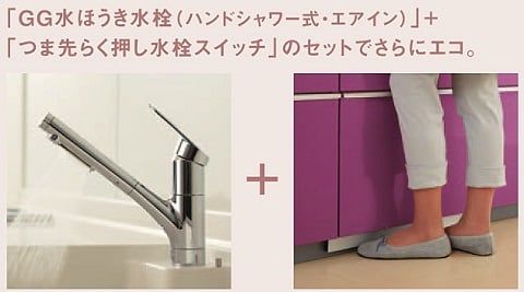 足元の水栓スイッチを組み合わせて使うとさらにエコになりますよ