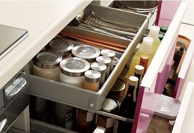 使用頻度の高いモノをすべて上段に収納できるようになっています。これによって頻繁に深く腰をかがめなくて済むので姿勢が楽です♪