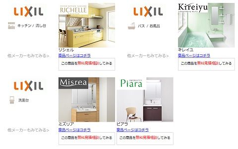 このページは、各メーカーのキッチン・お風呂・洗面台など水まわり設備の