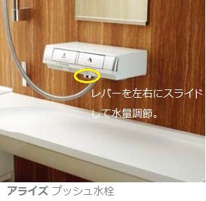 キレイユに採用されていたプッシュ水栓がアライズにも採用されていますが