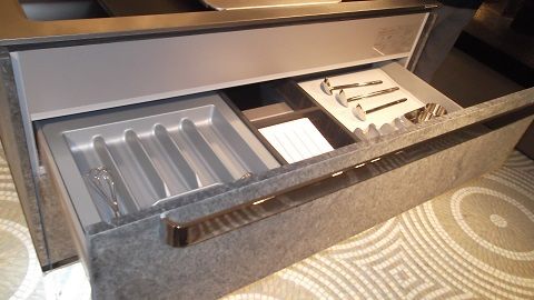 加熱機器も2つ。ダイニングテーブルとして使える部分にも小さい加熱機器まで付いてます