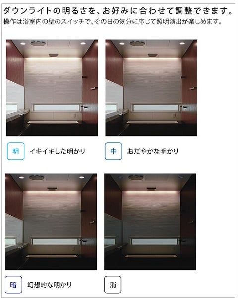 明るい浴室もいいですが、バスタブにつかってゆったり心と身体を解くときには