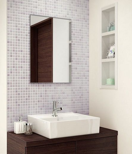 <洗面台:LIXIL エスタ × タイル: LIXIL インテリアモザイク シェブレンド IM-25P1>