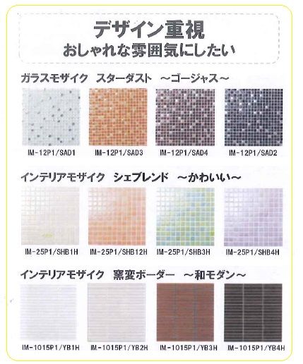 <洗面台:LIXIL エスタ × タイル:LIXIL ガラスモザイク スターダスト IM-12P1 >