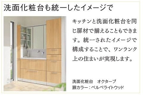 ちなみに、キッチンと洗面台を同じ扉カラーで