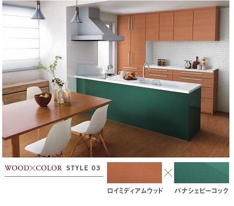 一見上級者カラーに見えるグリーンですが、チェリー調の木目と組み合わせると・・・