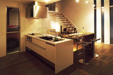 キッチン本体から独立して少し離れた場所に設置するワークテーブル。
