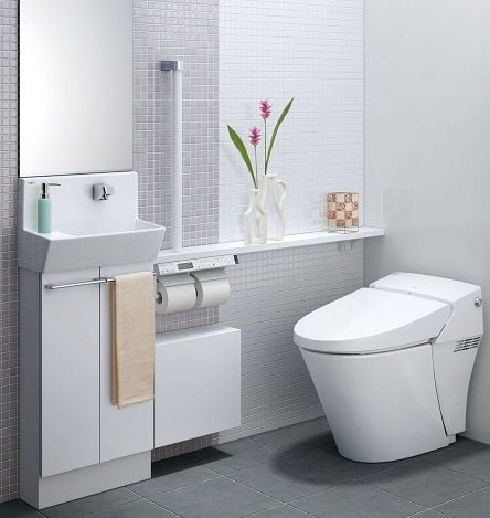 他のトイレ手洗いですと紙巻器と干渉するので、カウンター付きセットとは組合せができません。