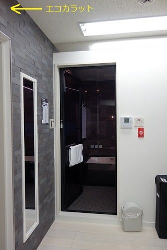 脱衣所の壁面には湿度調整をしてくれる「エコカラット」が貼られています。