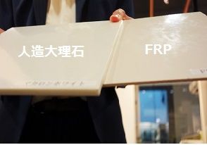 <FRPに比べてビュートの人造大理石は厚みがしっかりしています>