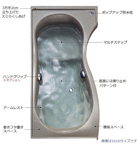 ※エルゴデザインの浴槽は1216の場合、ステップ無しのタイプになります。
