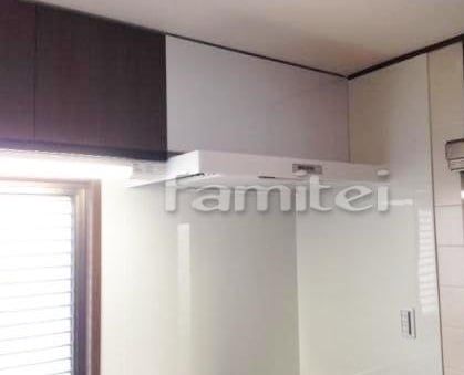 システムキッチンのフロアキャビネット(キッチンの下部分)とレンジフードを取替える工事を