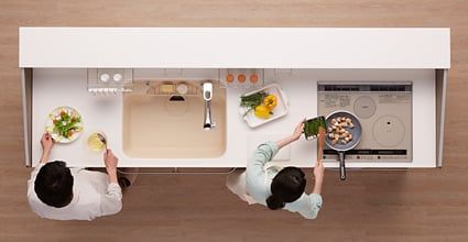 シンクの両サイドに2つの調理スペースがあるから、2人並んで作業しても動きやすい