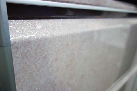 素材はどちらもアクリル人造大理石で、タカラさんに聞くと耐久性・清掃性はほぼ変わらないそうです。