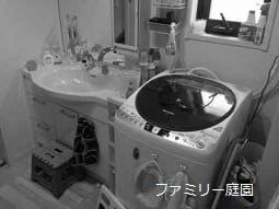 T様は、洗面台上と横部分にキャビネットを追加し、