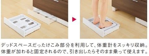 洗面台の下部分には体重計を収納するスペースがあります♪