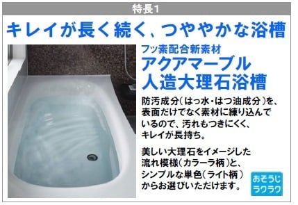 また、この浴槽は”アクアマーブル人造大理石浴槽”といって質感がつややか