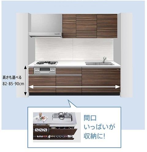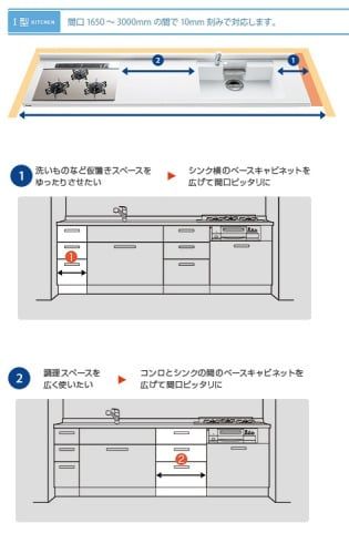 LIXILの収納上手なキッチン「リシェルSI」でも、間口サイズの微調整が可能。