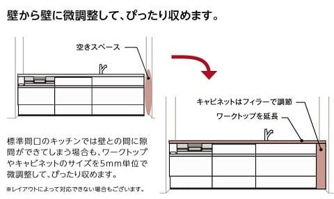 1?刻みでぴったりサイズのキッチンに仕上げることができます。