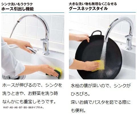 濡れた手で水栓に触れずにすむので、水栓まわりを汚すことがありません