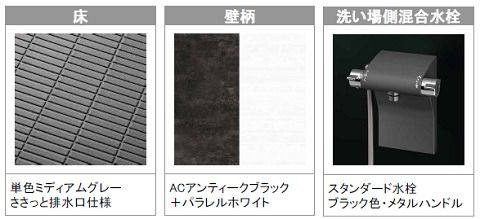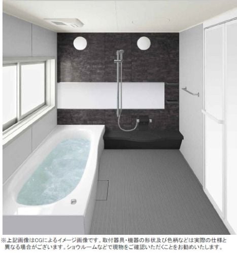 浴槽はホワイト系のお色を選ばれましたが、それ以外のパーツは黒を基調とされています