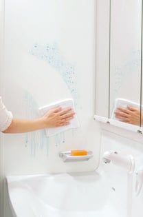 洗面パネルはホーロー製だから、ガラスと同じくサッとふくだけでOK