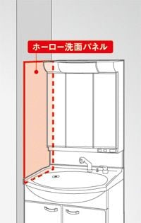 水ハネを気にせず、洗い物ができる便利な「ホーロー洗面パネル」