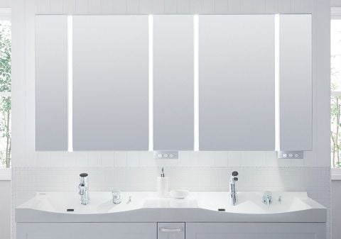 鏡には顔色を明るく見せてくれる”ツインラインLED照明”