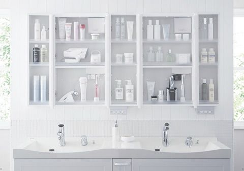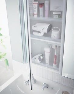 髭剃りシェーバーや美容家電なども、鏡裏にキレイに収納。