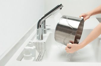 この水栓に惚れ込み、TOTOのシステムキッチンを選ばれる方も少なくありません!