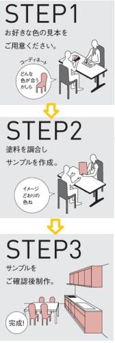 オリジナルカラー(※塗装仕上げに限ります)の扉をつくる流れはこんな感じです♪