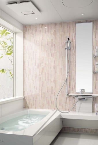 <パナソニック Lクラスバスルーム 1717 壁:ガラスタイルピンク×グレイスホワイト>