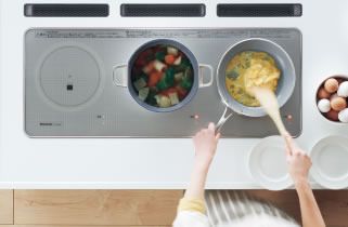 独自の横に並んだ3口コンロ「トリプルワイド」は調理のしやすさが人気の商品です。