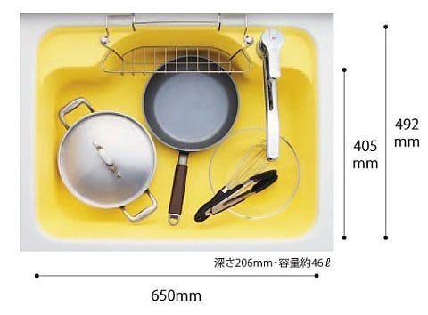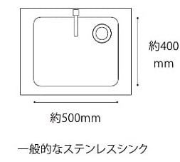 これは、コンパクトキッチンとしては最大クラスのシンクサイズです